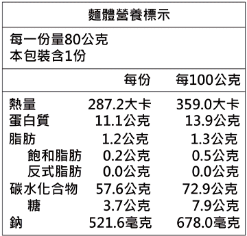 規格: 調理包淨重515g(固形物:120g)+麵體淨重80g